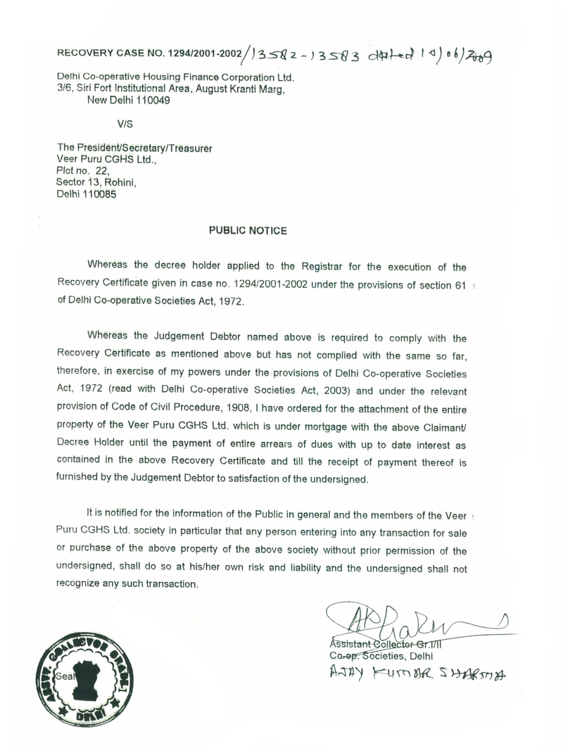 RECOVERY CASE NO. 1294/2001-2002/13582-13583 DATED 10/06/2009